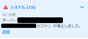 今回発生したのは、SynologyNASの電源をいれてしばらくするとファンが停止し、数秒で復活して、再び停止するを繰り返す問題です。数分おきに下記のような警告が通知されました。