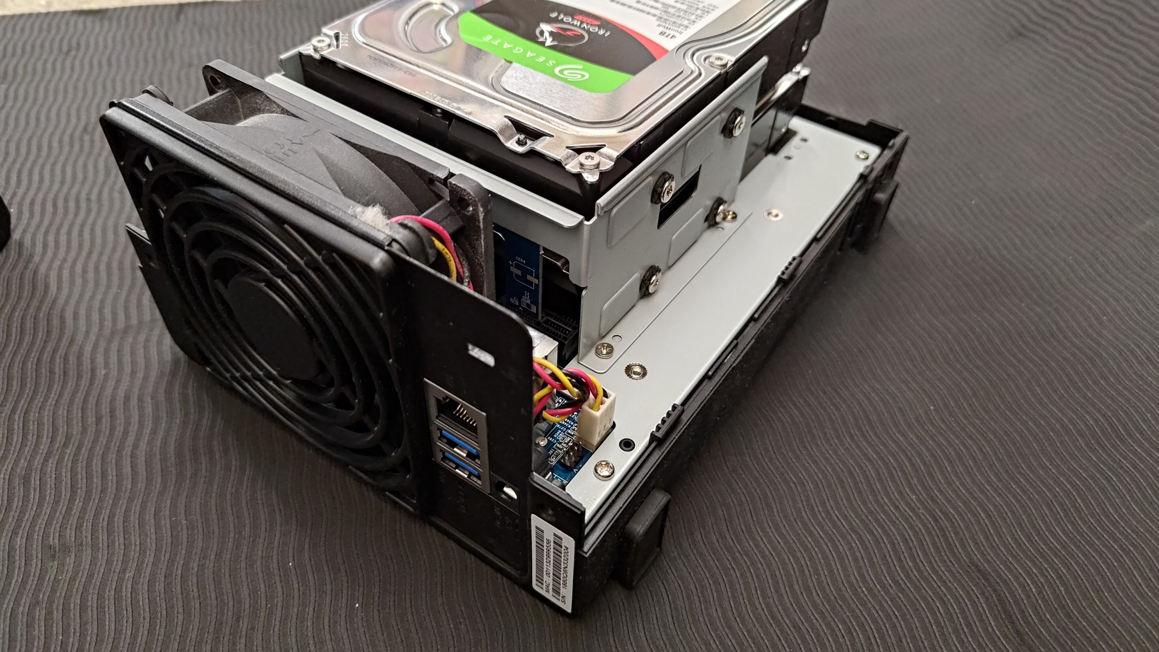 例えばDS218は背面からネジで止められていますが、DS218playはこのように内側のゴムリングで固定されています。